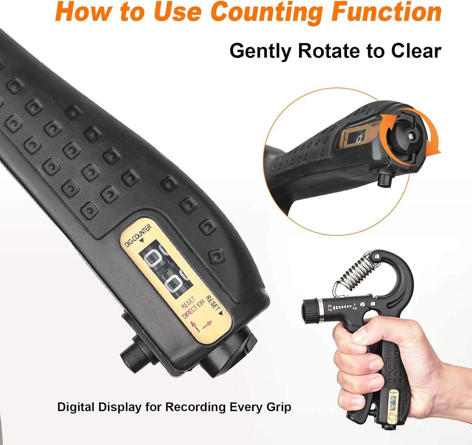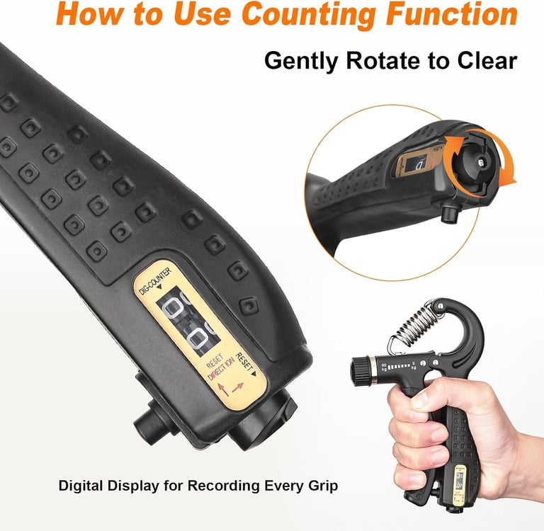 Wat deze griptrainer onderscheidt van veel andere modellen is de mechanische teller.